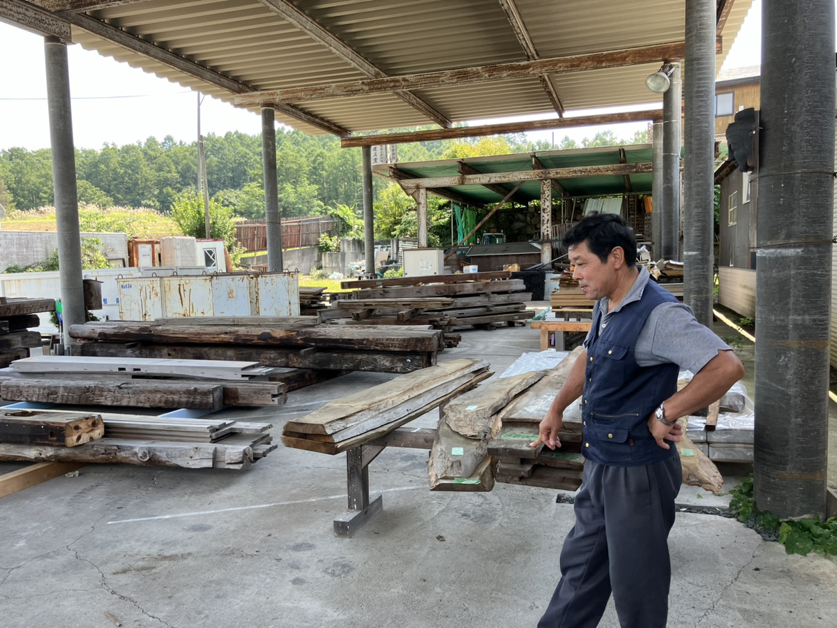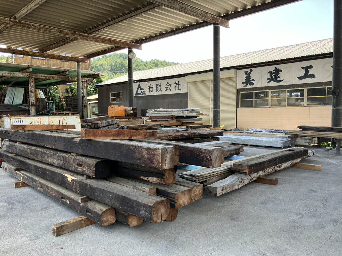 実は、取り壊される予定の古民家などから、古くなった構造用の木材などをもらい受けて保管しているんです!