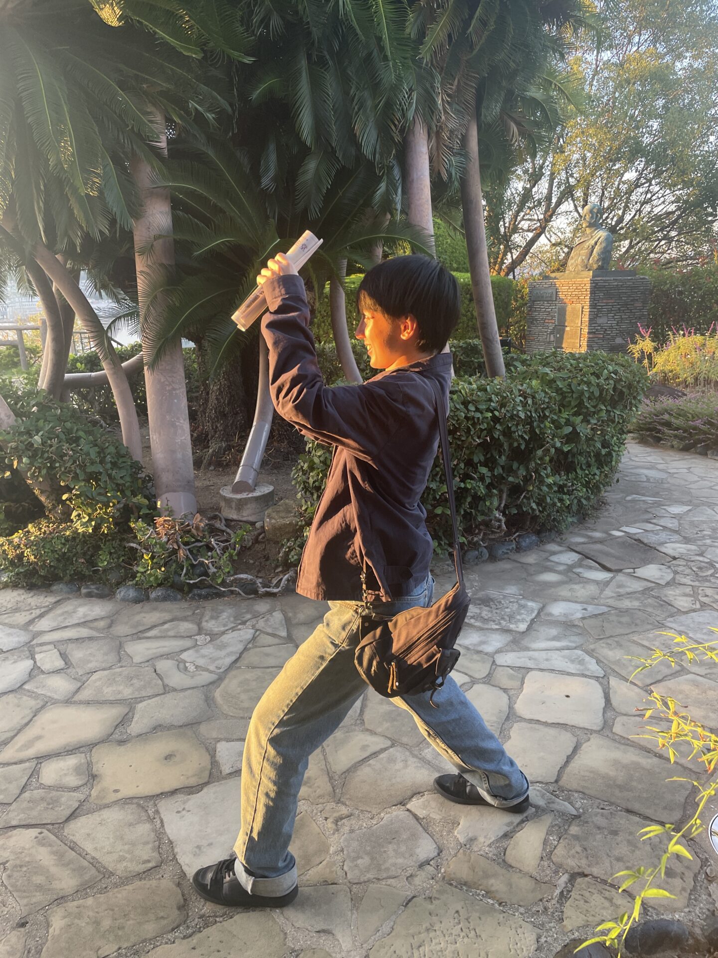 ちょうど夕暮れ時に差し掛かり、夕日に照らされながら快さんが写真撮影をしています🌇