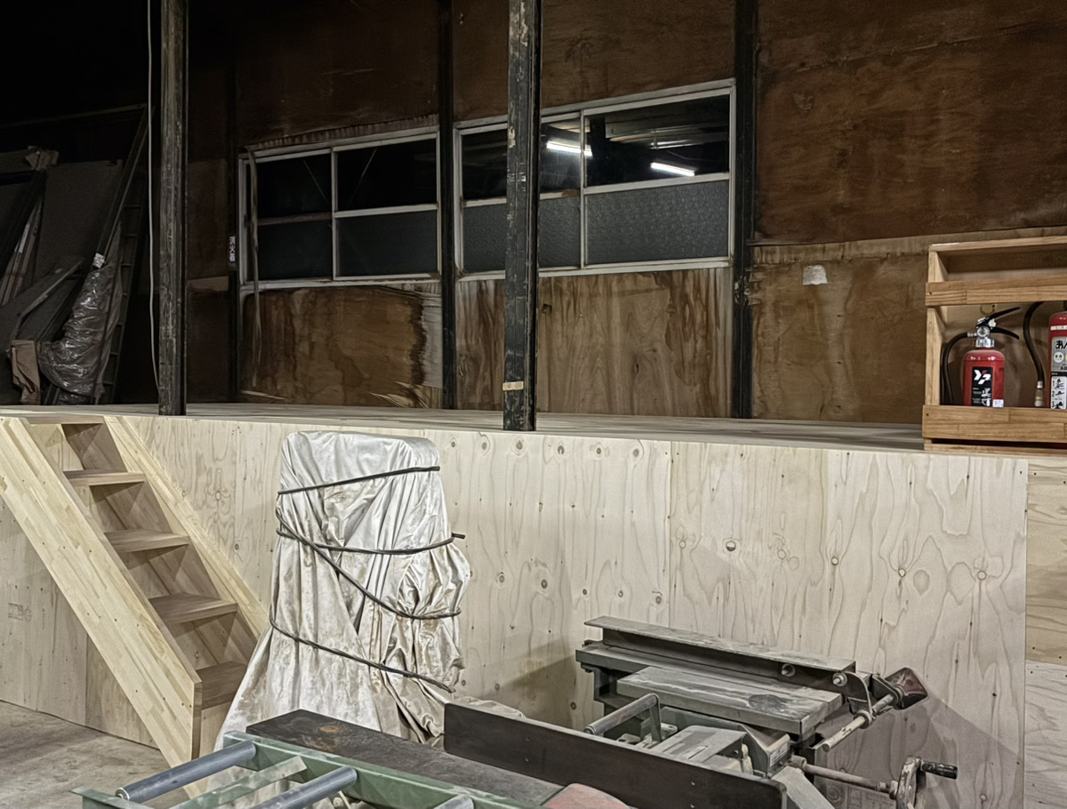実はかなり伝統のある森の音の作業場は、地震や経年劣化等で一部床が歪んでいたので、余った材料を使い、新しく床を組みました!歪みを直すのは大工仕事の醍醐味!はやり大変でしたが、親方から助言を頂きながら、創意工夫で楽しく工事でき勉強になりました!