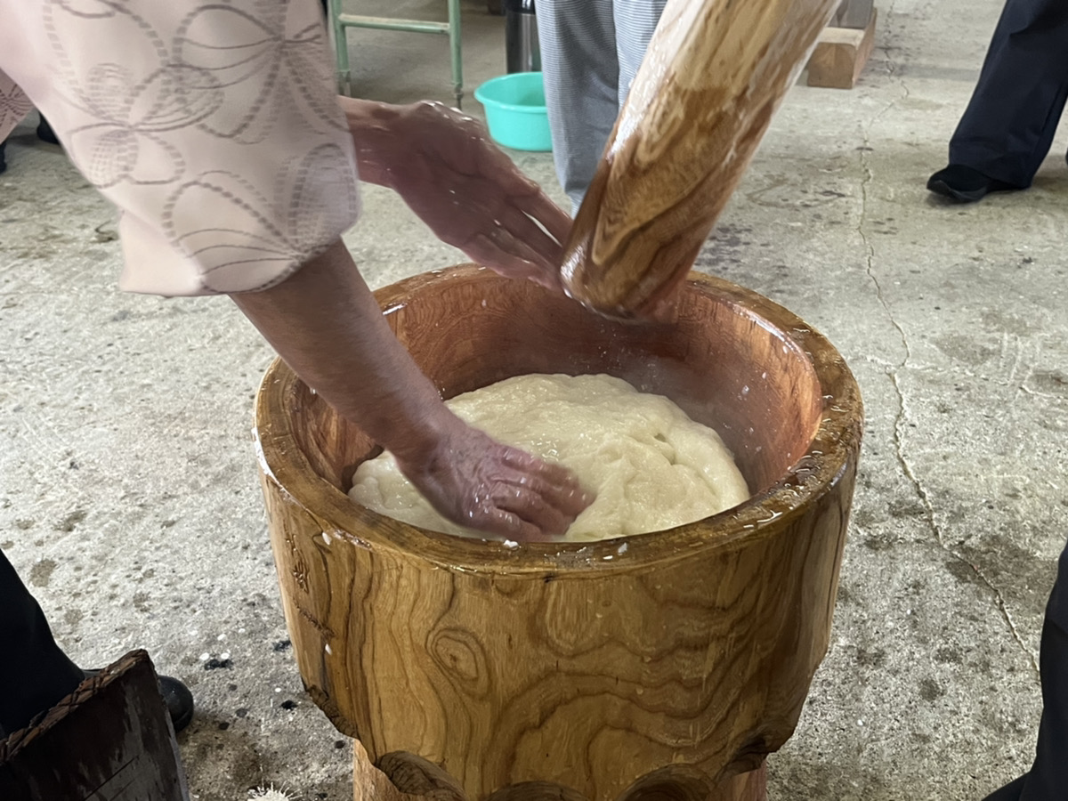 みんなでお餅をついていき、15分程でもちもちのお餅が完成!