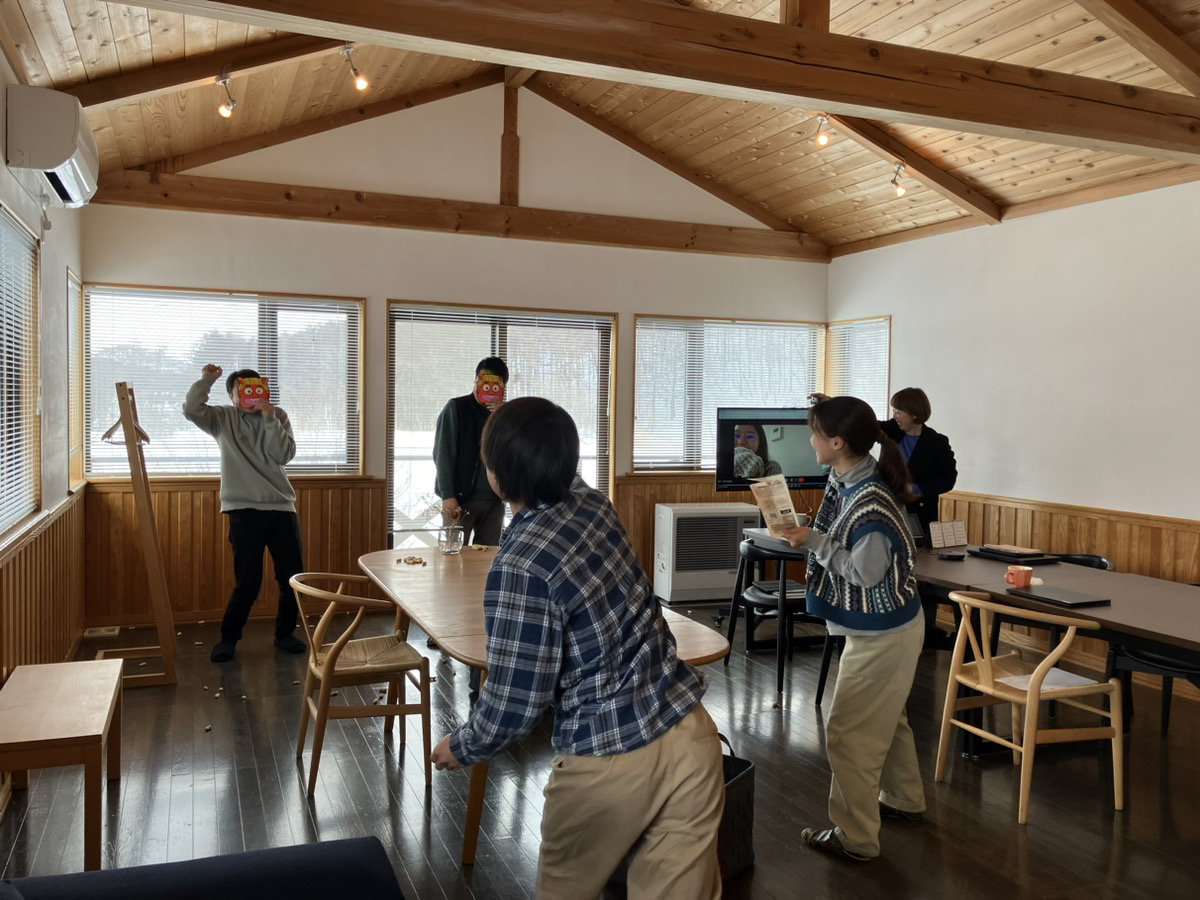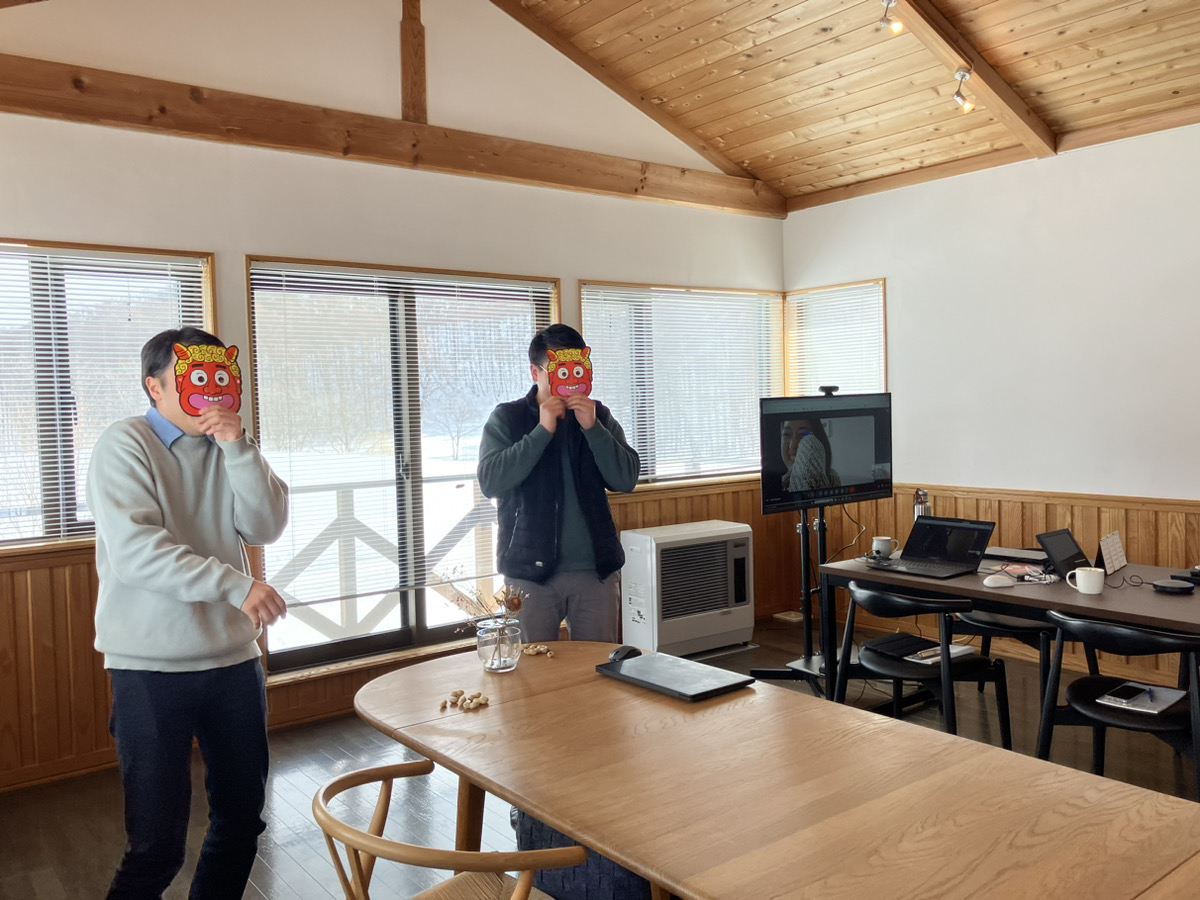 リモートで参加する愛香さんも豆まきの様子を楽しんでいますね!