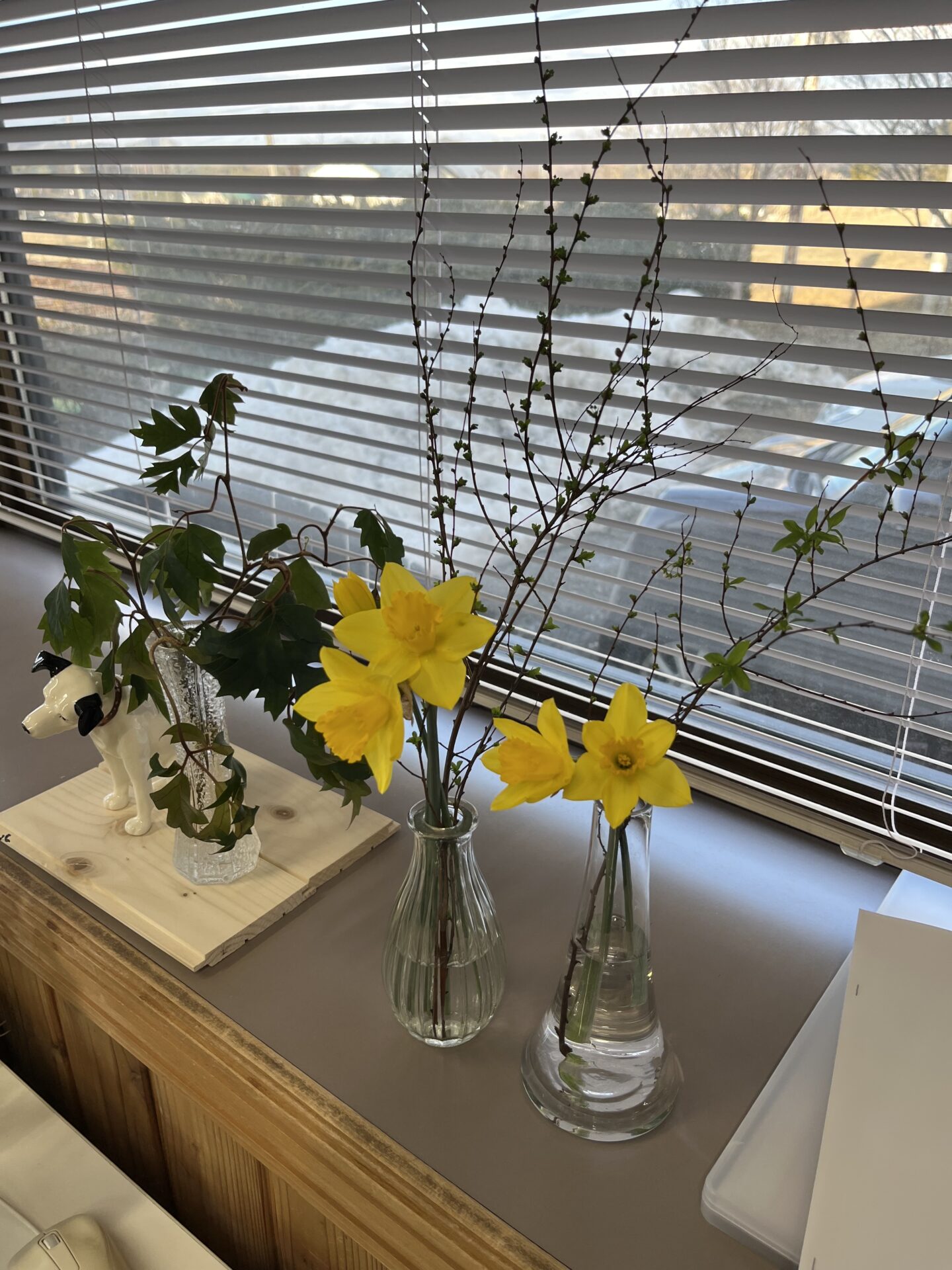さて、本日は春が近づいてきて、事務所の所々に増えてきたお花たちのご紹介です!