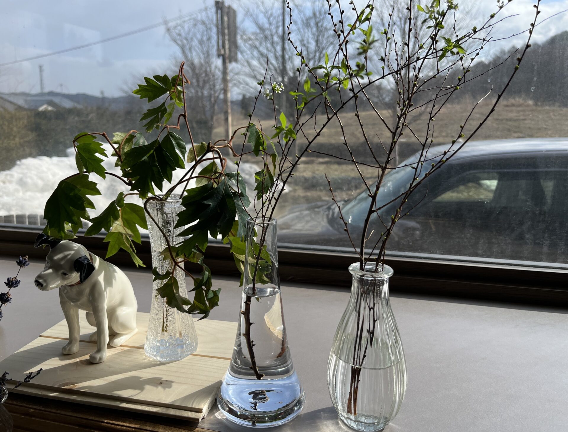 事務所にお越しの方はもちろん、お近くを通りかかった方も、ぜひ「森の音の小さな春」を覗いてみてくださいね。次はどのお花がしれっと増えているか……私も楽しみです!