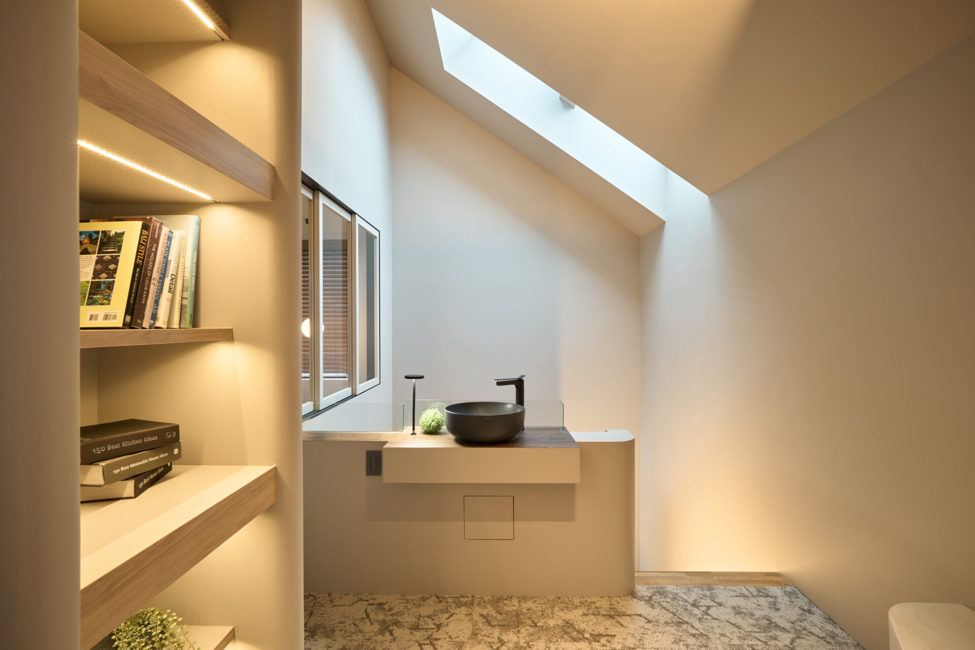2階は天井の勾配と窓からの光にこだわった、洗礼された空間に。