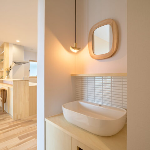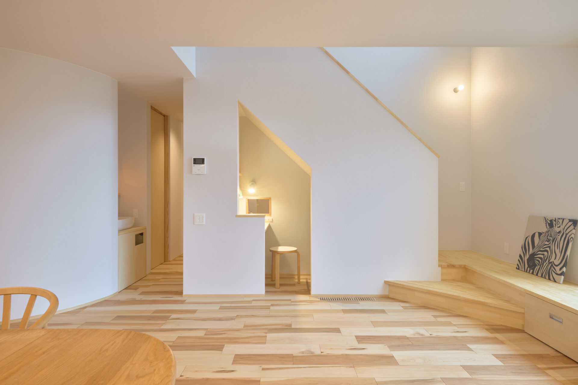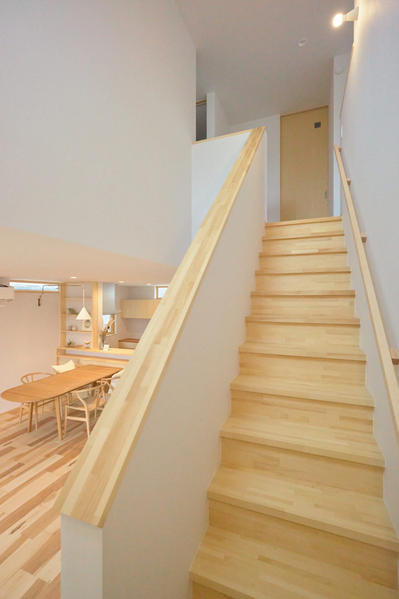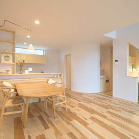 あえて1階の大部分をひとつの大きな空間にまとめることで、どこにいても家族の気配を感じられる設計に。